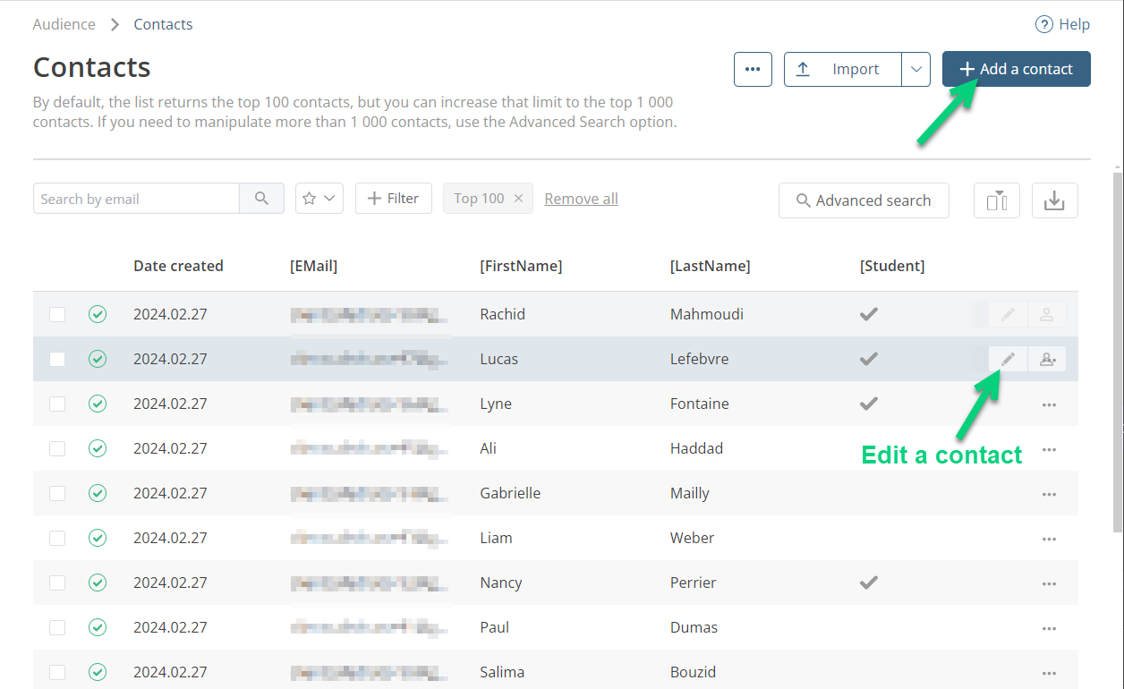 Editing a field manually is less risky if one of the fields's value to edit is the primary key. Indeed, as it is the primary key that is used to determine if a contact must be added or modified during an import, if the key has been changed, the contact will not be overwritten on import. A common example is a client that uses a new email. Importing this client with a new email will create a second profile for that client. To avoid duplicates, you can, when possible, edit the contact's email manually. Make sure to change this info in your import file as well.