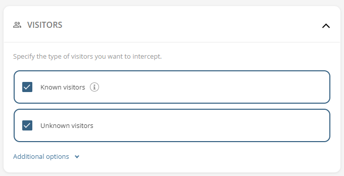 In Visitors, indicate which visitor type you want to intercept (you can check both options):