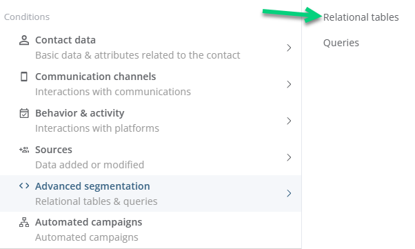 Then, select Lead generation. The lead generation data are stored in this table. Under the condition, click Add criteria to add a clause. For the value, you have 2 options.