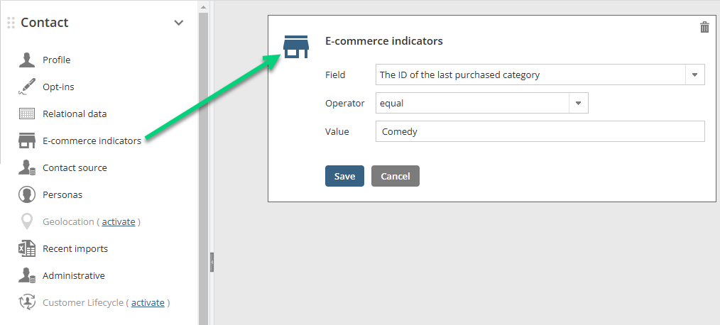 You can then select among the purchasing preference indicators to target your contacts.
