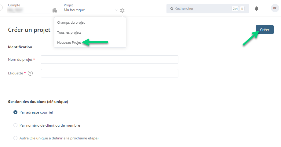 Vous pouvez avoir plusieurs projets au sein du même compte. Chaque projet ne peut avoir qu'une seule liste de contacts. Par contre, on peut segmenter la liste en groupes (c'est fortement recommandé) afin de cibler des contacts selon certains critères lors de l'envoi de communications.