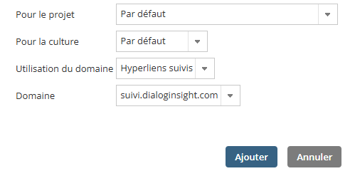 Rendez-vous dans Compte → Gestion des domaines → Liens de suivi. Dans la section Liens de suivi pour les projets, cliquez sur Ajouter.