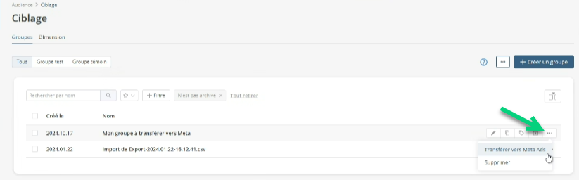 Pour préparer l'export, vous devez créer un groupe avec des critères qui ciblent les contacts (avec le consentement requis) que vous voulez exporter vers Meta.